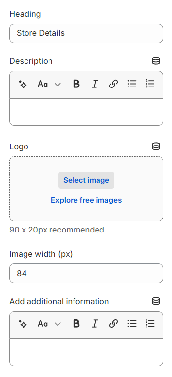Use the provided text fields to add a suitable heading/description/additional information. Leave any of them blank if you do not want to display them.