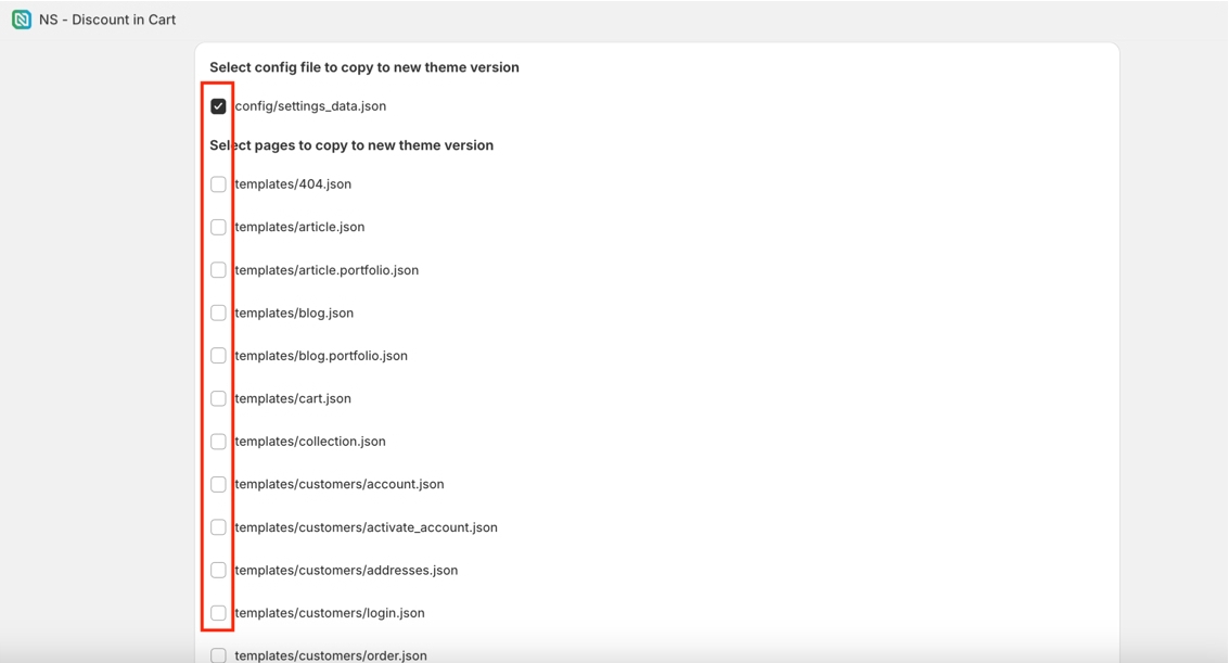 Step 2: Go to the app NS ‑ Discount in Cart -> Settings -> Select the Rokan theme you have uploaded and use it in your store. -> Save