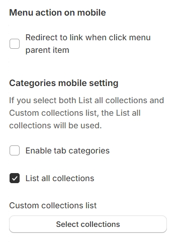 Custom collection list: Display only selected collections in the categories tab for a more curated experience.