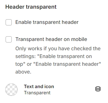 Enable transparent header: Turn on the option for a transparent header, offering a sleek look to your site.