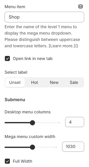 Mega menu custom width: You can also set a custom width for the mega menu.