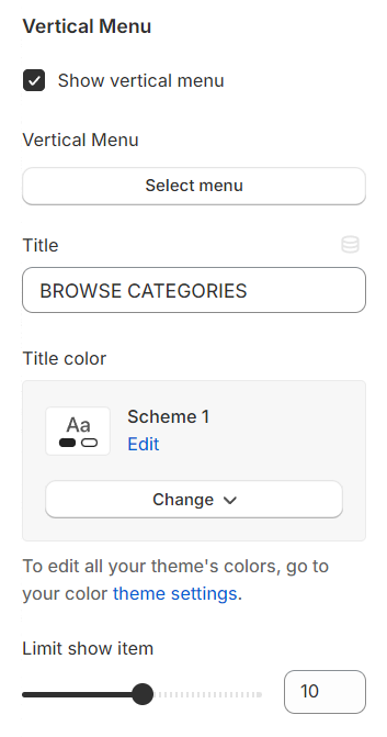 **Limit show item:** Set a limit on the number of items to display within the vertical menu, keeping it concise and navigable.