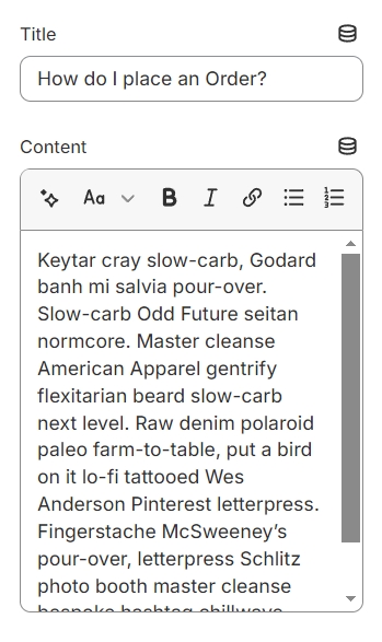 This block is designated for inputting your frequently asked questions (FAQs) and their corresponding answers.