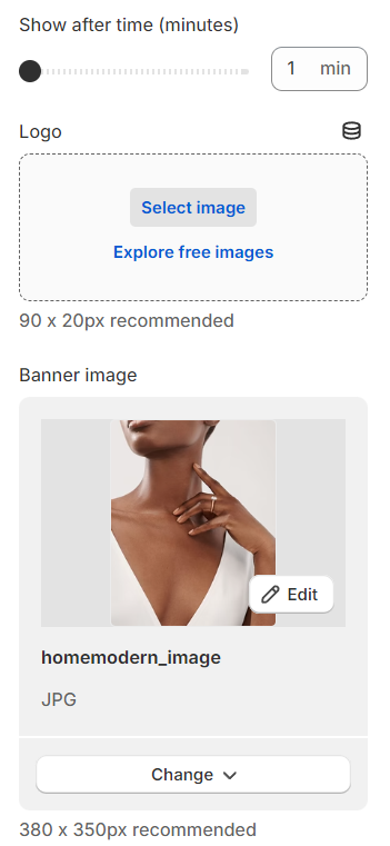 Logo: Choose and set a logo to be displayed within the popup for branding.