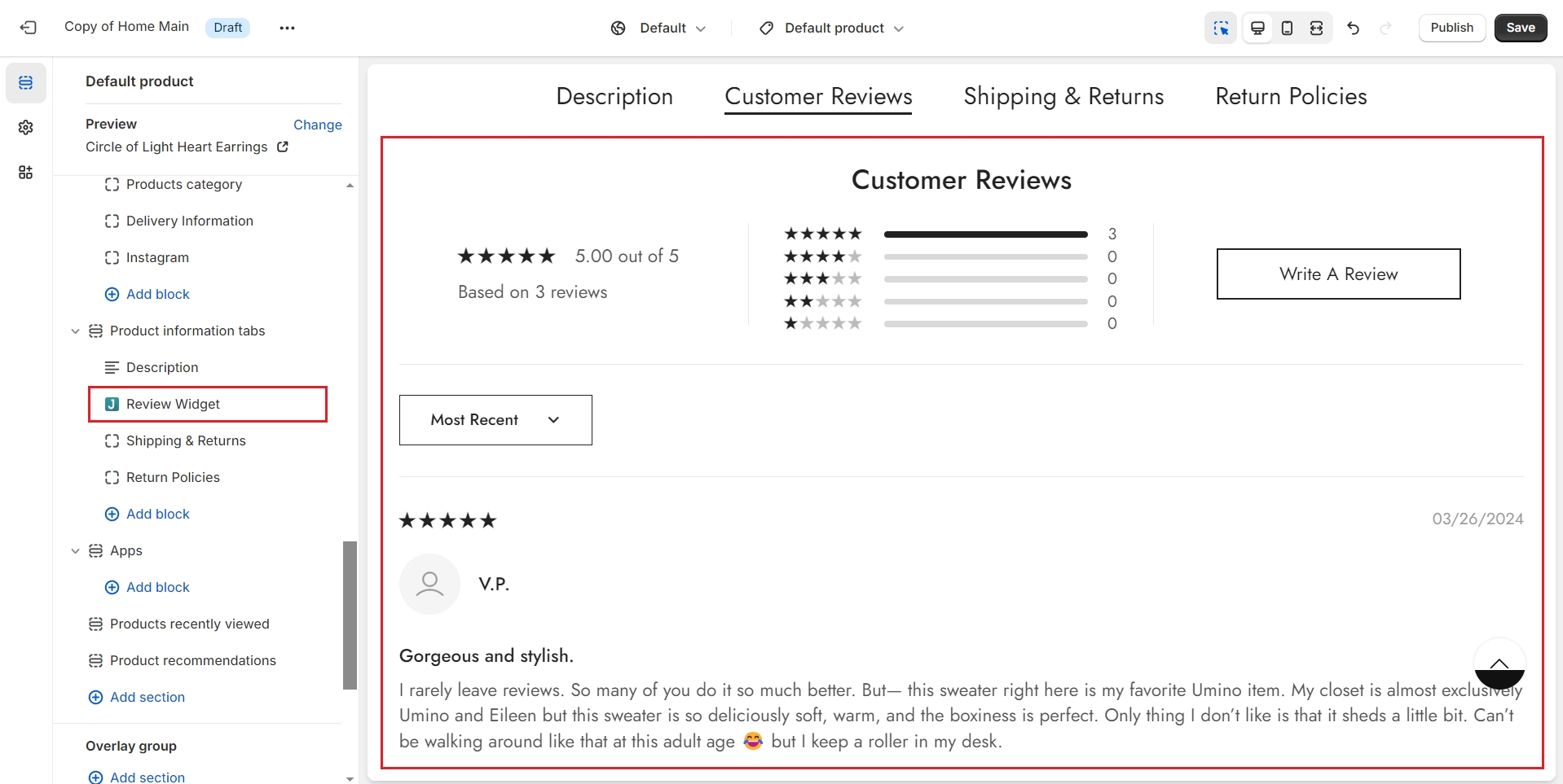 Tab Review: You can integrate app review with the theme and then add the snippet code to show reviews into the tab Review.