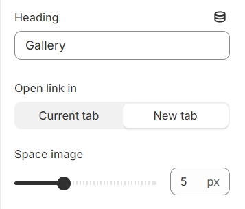 Open link in: Choose whether links from the gallery open in the current tab or a new tab, providing control over the user's navigation experience.