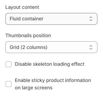 Enable sticky product information on large screens: Activate this feature to keep product information visible and fixed in place as the user scrolls on larger screen devices, enhancing visibility and accessibility.