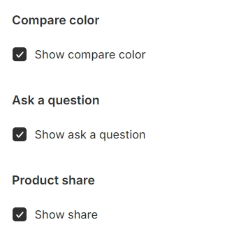Show compare color: Enable this feature to allow customers to compare products in different colors directly on the product page, enhancing the shopping experience.