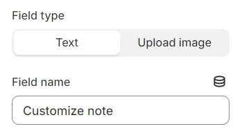 Field type: Choose between 'text' for inputting text data, or 'upload image' for the option to upload an image file.