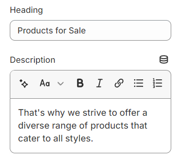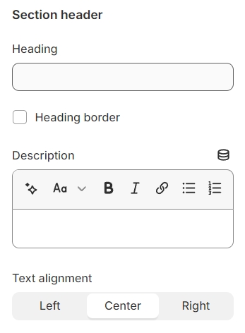 Use the provided text fields to add a suitable heading/subheading/description. Leave any of them blank if you do not want to display them.