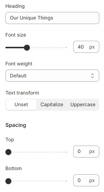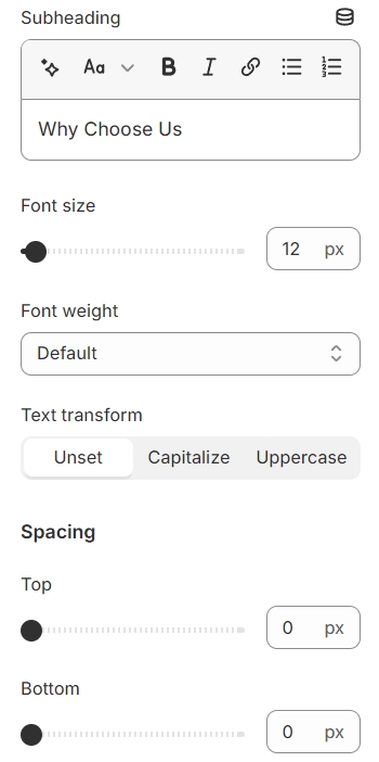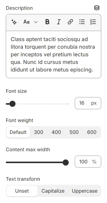 You have the option to select the content you wish to display and customize its appearance by adjusting the font size, font weight, and text transformation settings.