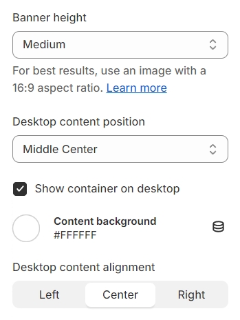 Banner height: Configure the banner's height to either adapt to the image's dimensions or to a preset height for consistency across different banners.