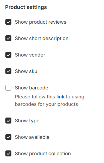 Product settings