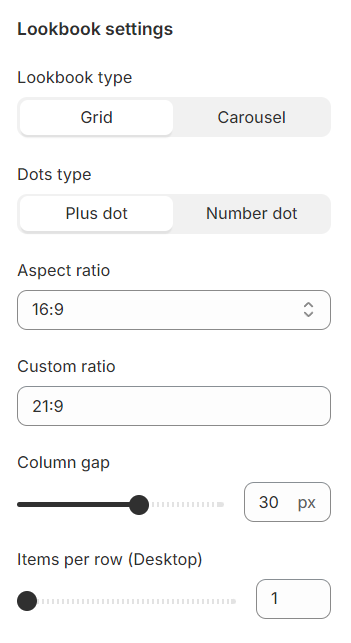 Lookbook type: Choose between a grid or carousel format to display your lookbook.