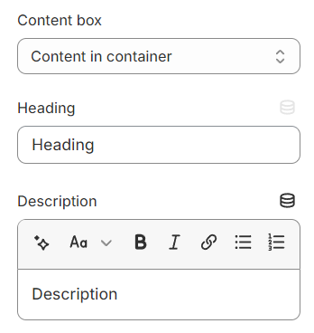 Use the provided text fields to add a suitable heading/subheading/description. Leave any of them blank if you do not want to display them.