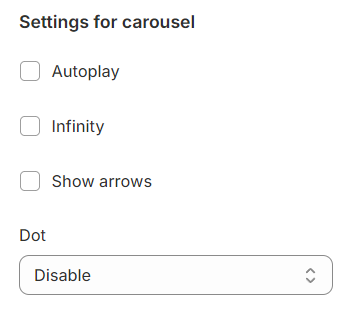 Autoplay / Infinite Play: Enable this setting for the carousel to automatically scroll through items indefinitely, providing a seamless browsing experience.