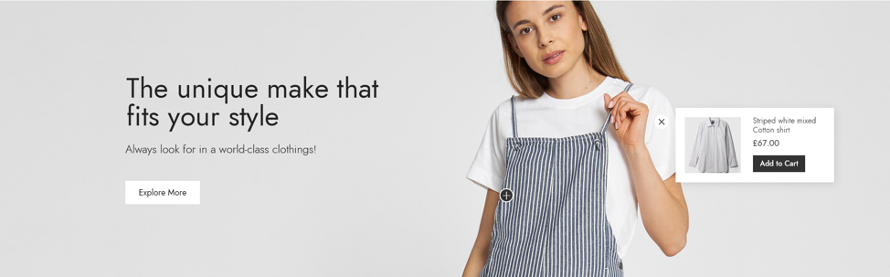 You can include up to 5 products within each lookbook, each marked by a plus sign. The position of these signs can be adjusted to precisely indicate where each product is featured within the lookbook image.