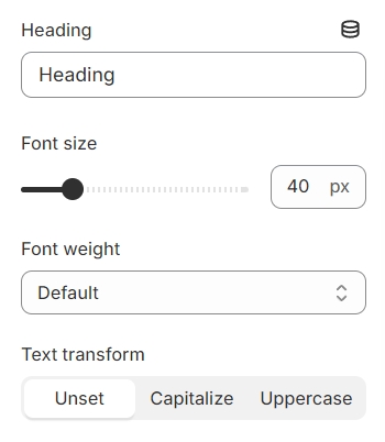 Configure the heading by adjusting its font size and weight, and applying text transformation options such as uppercase, lowercase, or capitalize, to achieve the desired emphasis and fit with your overall design aesthetic.