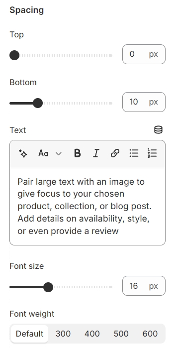 Modify the spacing above and below the text content to create a balanced layout. Additionally, customize the font size and weight to enhance readability and align with your design preferences.
