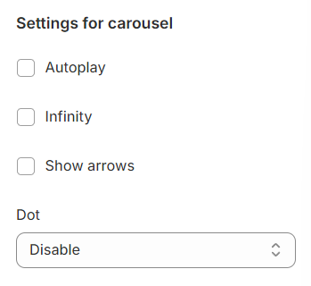 Autoplay / Infinite Play: Enable this setting for the carousel to automatically scroll through items indefinitely, providing a seamless browsing experience.