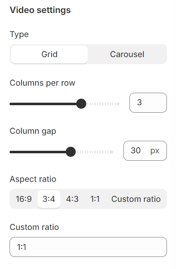 Columns per row: Specify the number of columns you want in each row to structure your layout.