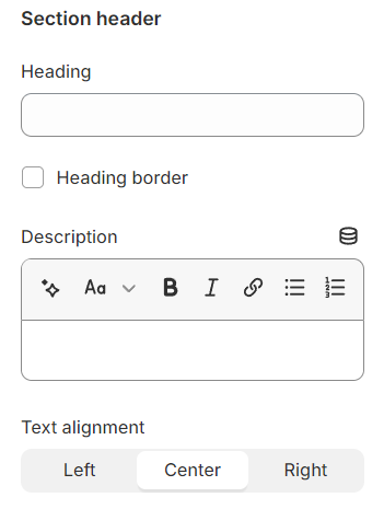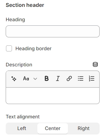 Use the provided text fields to add a suitable heading/subheading/description. Leave any of them blank if you do not want to display them.