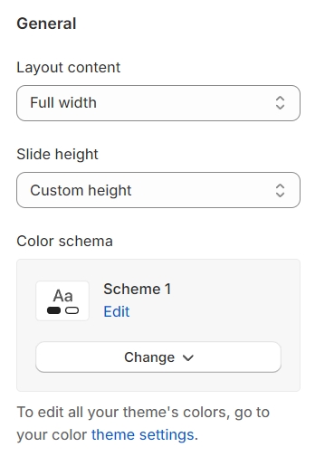 Slide height: The image height can be configured to fit the full screen, maintain its original height, or be adjusted to a custom height