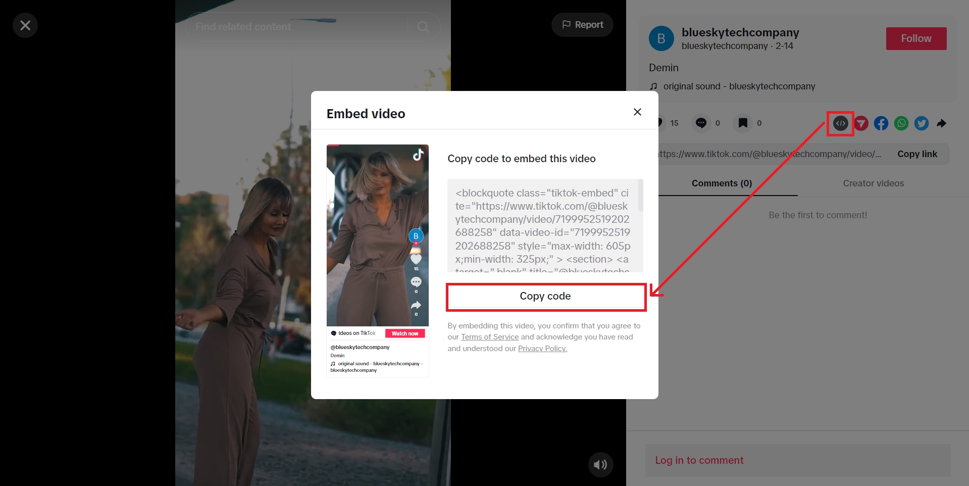 Click to the block Video and paste the code you have just copy to the Video embed url box